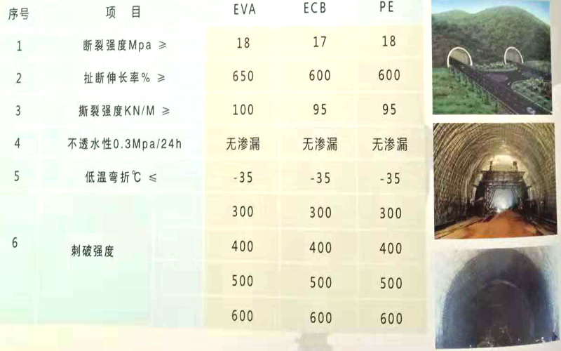 防水板又叫土工膜,習慣上把>=0.8mm厚的土工膜叫防水板,<0.8mm的叫土工膜,它是以高分子聚合物為基本原料制成的一種防滲材料,分為均質防水板和復合防水板。吊掛式隧道專用防水板是我公司開發創新的新型隧道專用防水材料,實現無穿通釘施工懸吊排一次完成,可大大簡化傳統防水材料在隧道中的施工難度,提高鋪設質量和鋪設效率,縮短工期,大幅降低工程綜合造價,具有極強的市場競爭優勢。